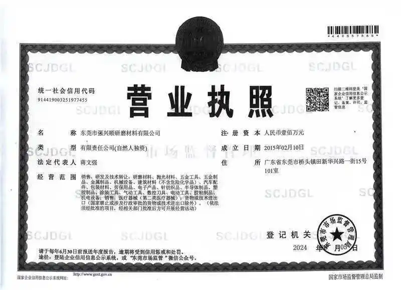 Company Name : Dongguan Qiangxingshun Abrasives Co., Ltd.